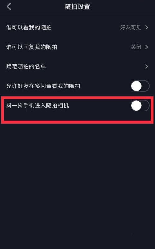 4、进入随拍设置之后,我们看到最下面有一个“抖一抖手机进入随拍相机”的设置,将这个关掉就可以了,反之开启。