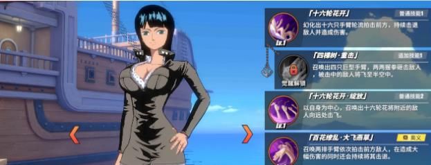 (1)罗宾的定位在在游戏里边是"心"类型角色,这一类角色有着更远的攻击距离,有些类似于大家的初始英雄“娜美”。罗宾的主要攻击方式为远程作战,同时它的技能与普通攻击也有将敌人击退的特性。