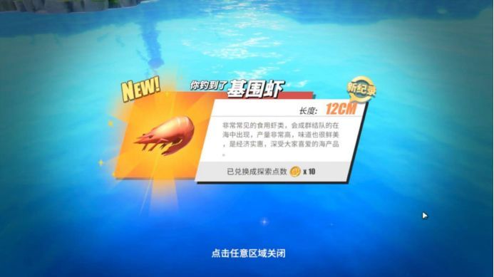 这之后会玩到一个钓鱼的小游戏,这里笔者是钓上来了一条“基围虾”,不知道其他玩家是不是钓上来的不一样。