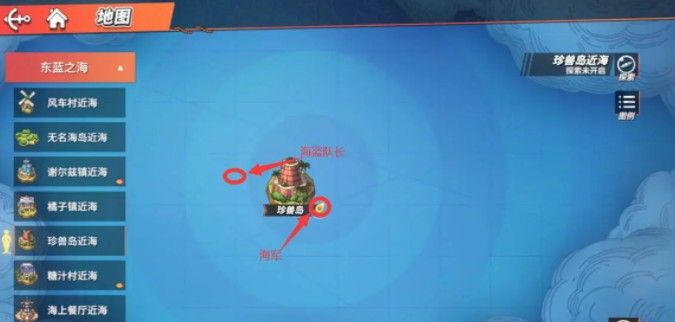 来到【珍兽岛】右侧找到海军.击败海军,然后来到左侧找到海盗队长,接着来到【无名海岛】开启宝箱