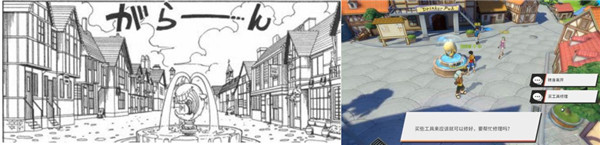 在小镇广场中心,有一个原著中曾经出现过的鲸鱼喷泉,而当玩家靠近后就会出现“放大镜”,这时会弹出一个对话框,并示意玩家“靠近看看”。