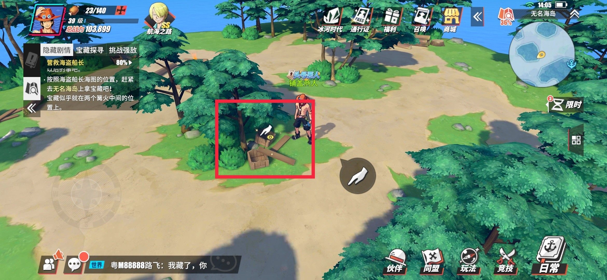 然后前往无名海岛(点地图可以快速到)