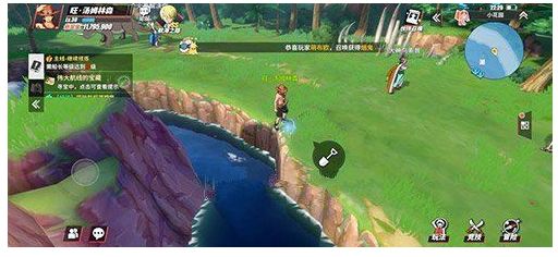 在这里有个池塘,然后玩家靠近,可以看到一个闪光点,靠近有一个小铲子按钮,然后点击进行互动,就可以让你的角色来进行发掘,从而顺利得到宝藏了。