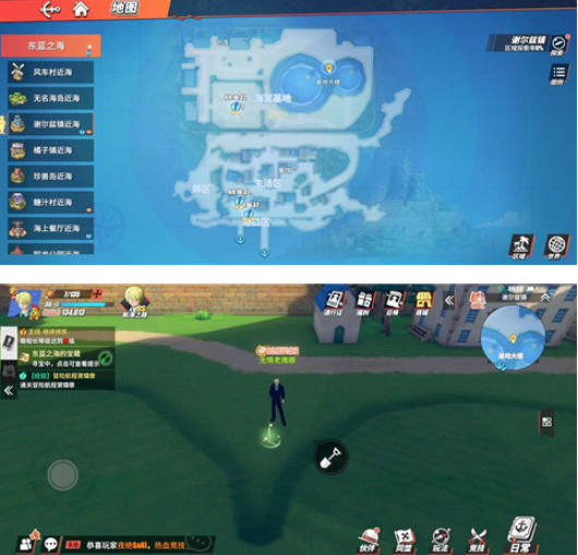 这张东海之蓝藏宝图只有我们通关后才可以获取,上面介绍这样一句话,说它在航海王所陨落的地方的河流中,首先需要我们来到罗格镇的近海这个区域,在他的左上方我们可以发现一座桥,乘船才可以到达这座桥上,走到这座桥上后,在他左侧的楼梯那里就有一个小铲子的标识,开挖就行。
