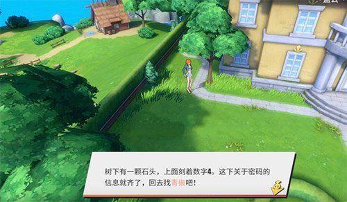 第二个线索:玩家在秘密基地下面沿着海边走,来到森林,然后就可以发现这个树下面可以进行调查,随后就可以得到第二个线索密码。