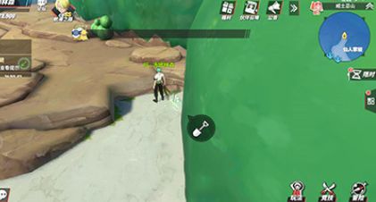 然后来到这个最上面的位置,可以看到一个非常大的仙人球,这个就是我们所需要找到的目标了,然后来到如图所示的位置后,在这里可以看到一个发光的亮点,然后直接靠近,就可以来进行挖掘。