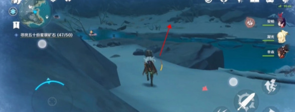 玩家传送到眠龙谷对面的传送点后,朝着进入雪葬之都·近郊的山路走,可以在一块深赤之石后面找到一处有矿点,全收下大概可以获得5块以上的星银矿石。