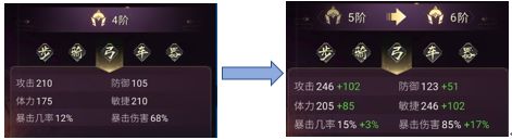 单单是弓兵4阶进5阶,暴伤直加17%。什么概念?综合相加就是一件橙色装备啊。