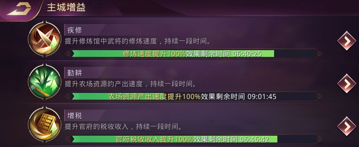 主城增益这3个buff要时刻开启。