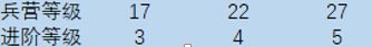 军营一定要跟随官府等级走。军营从7级开始,每升级5级就可以升一阶兵阶,我们只需要将军营等级控制在兵种进阶的几个节点,如下图: