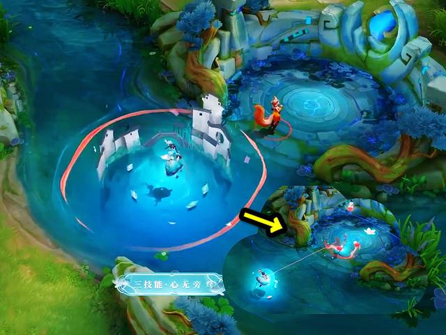 二技能特效是在西施脚下召唤出很多小纸船旋转,像锦鲤一般,然后再召唤出一只小木船向前冲刺划过,在小木船行驶到最远处触碰到敌方目标后会炸裂,并荡起很多湖水涟漪。