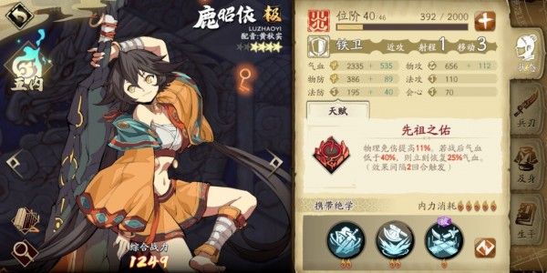 鹿昭依(4星,40级,1249,5+10+10冰魔蝎,誓死+泼风+缚力)