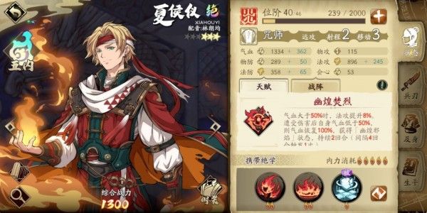 夏侯仪(3星,40级,1300,10+10+10朱焰,离火+焚火+裂袍)