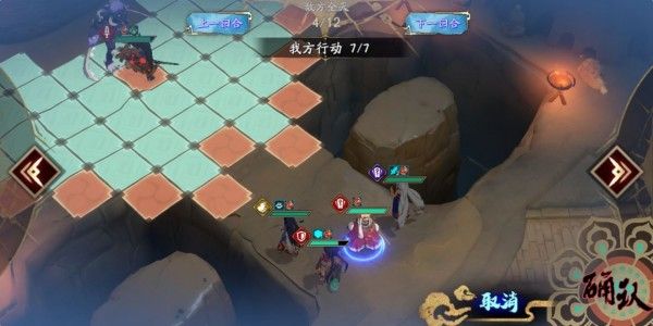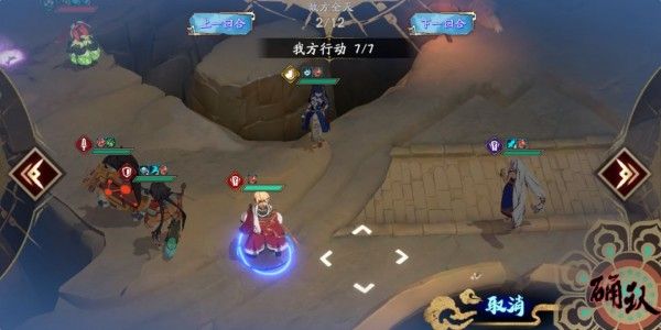 第7回合。是关键回合,需要卡位引导BOSS攻击夏侯仪(最好让它多走几步)。依依走到BOSS下方卡位等待,韩无砂向左1格加血刃普攻,殷剑平走到BOSS左侧借焚火普攻,夏侯仪向下走2格(引导BOSS移动),白菀原地治疗依依。敌动阶段,BOSS范围内只有炎属性角色,必定选择攻击夏侯仪。回合结束时,BOSS剩余血量13542。