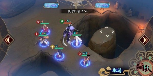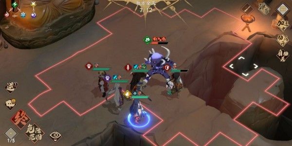 第4回合。殷剑平走到buff地块下方普攻击杀雷小怪,然后走到buff地块,再动向上走普攻BOSS,其余角色向上走。敌动阶段,BOSS原放单体技能,殷剑平需要抗住。