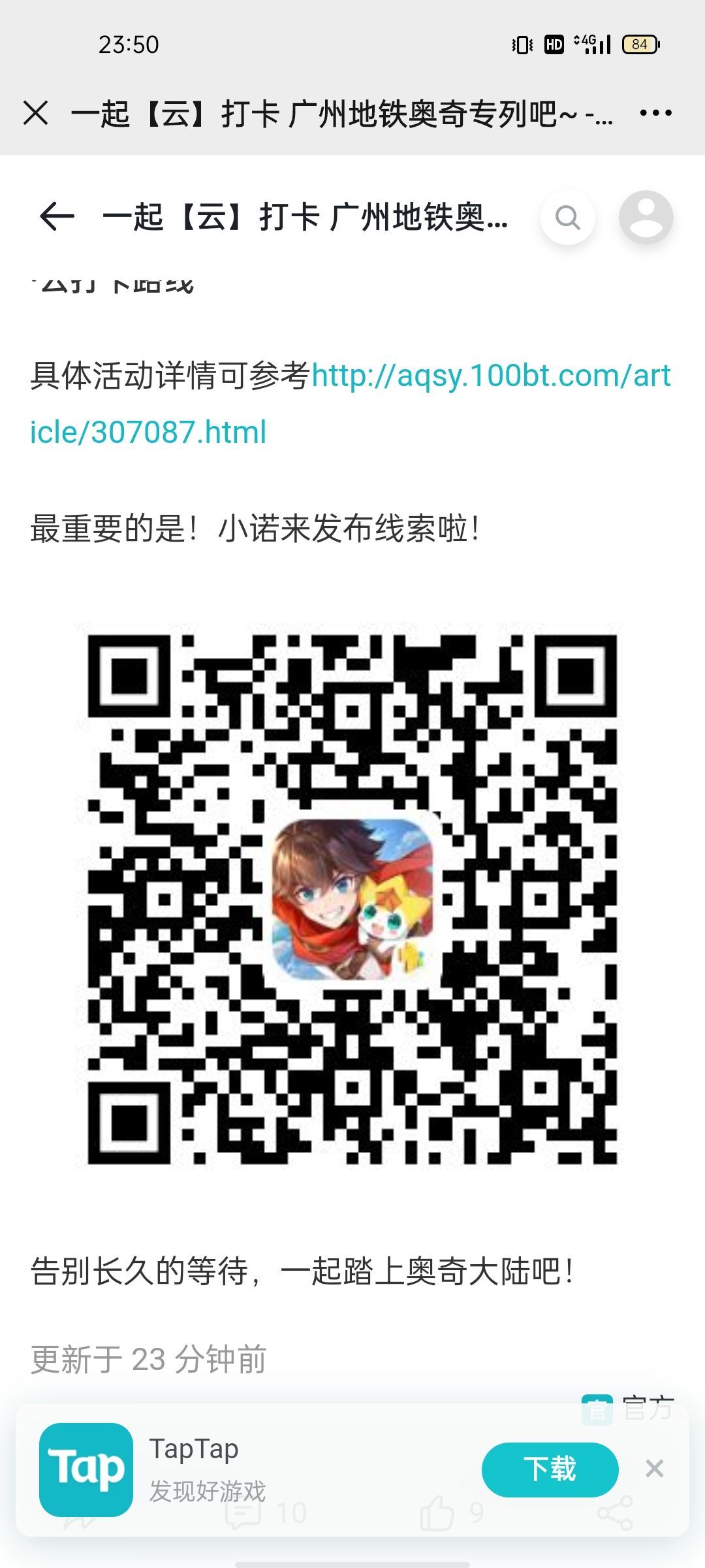 ⑤tap奥奇传说专区,与广州地铁最相关的地方。就是云打卡那个帖子下面说发布线索那个图,扫它