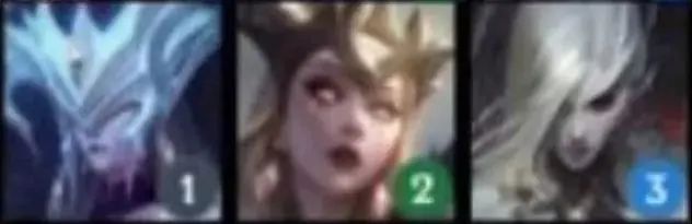 从左到右英雄为:丽桑卓(1)、乐芙兰(2)、莫甘娜(3)