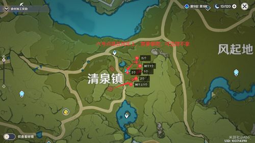 共计25个慕风蘑菇,最优路线可获得20个,建议带上七七,会有小手显示,更好采集: