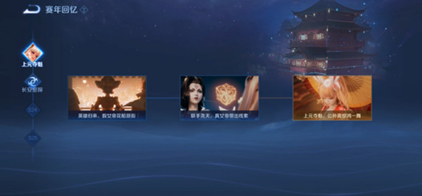 为了帮助玩家们更方便地回顾赛年故事,我们上线了赛年回忆系统。玩家通过这个系统可以查看从S22赛季《上元夺魁》开始的赛年故事中的精彩内容。同时,本赛季新解锁的故事,也会在这个系统中同步开启。