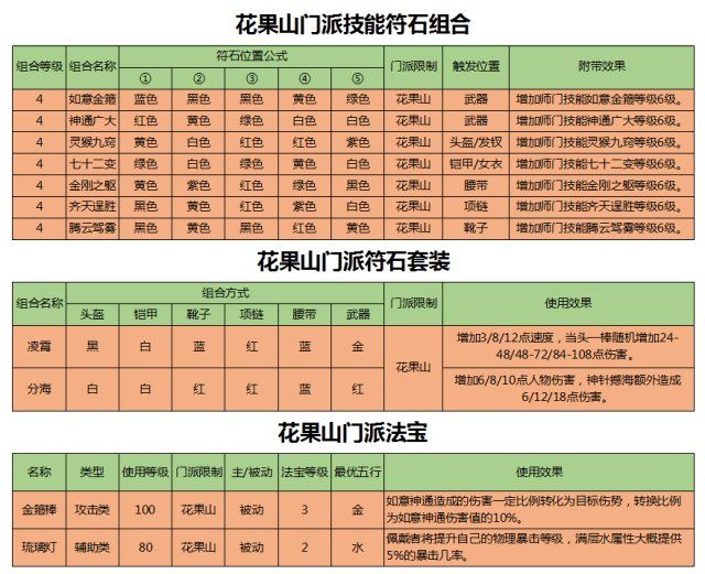 花果山的伤害来源于基础伤害,所以力量属性的动物套装可以配合经脉效果进一步提升伤害力。
