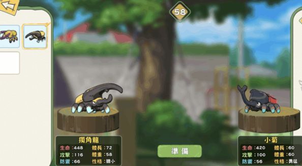 想必新生代甲虫,老前辈的甲虫更厉害,玩家想要挑战就需要准备更厉害的甲虫,稀有虫点中的甲虫属性更好,地图等级越高产出的甲虫属性越好。抓住甲虫后玩家可以查看甲虫的品种、性格、攻击力等。