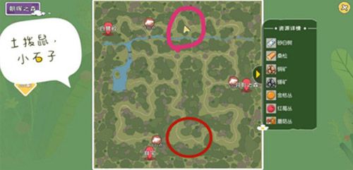 首先土拨鼠只会在【朝晖之森】地图刷新,在该地图中土拨鼠一共有两个分布点,具体位置如下图红色圈圈所示: