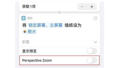 现在自带的快捷指令应用新增了一些新的功能选项,例如在自动设定壁纸选项中,新增了视角缩放开关,不过目前这个开关还没有被翻译成中文。