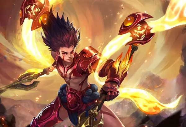 哪吒升上天空并对敌方所有英雄施加乾坤圈,释放后将获得其视野并打断回城,随后可选择一位敌方英雄并飞冲到其身前,造成500/625/750(+100%物理加成)点物理伤害并将其击退;落地时激发火莲之华,对火莲范围的敌人每秒施加1次炙炼火种,并增加自身30%韧性;落地时还会触发火莲之印;飞行过程中再次释放技能会立即降落并激发火莲之华。