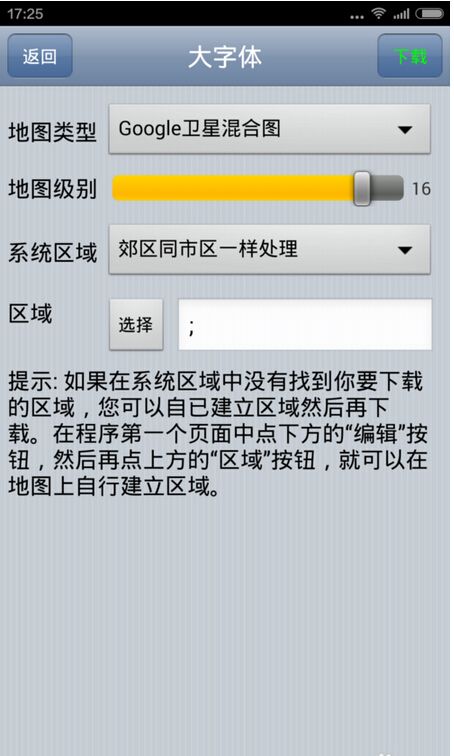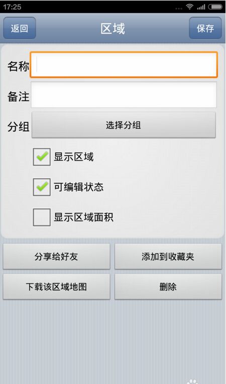 6.下载完 ,就回到了“区域”页面,命名好这次的区域名,就可以保存了!先下载“区域”是在离线下可以清楚的利用地图