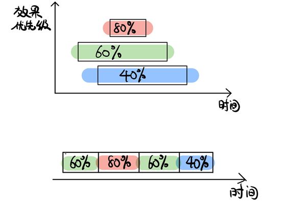 (例如:一个目标最开始受到【二星蔚】的殴打,在2秒时他又受到了【一星蔚】的殴打,但一星蔚装备了【轻语】,一星蔚在第3秒时造成了暴击。则该目标最开始的2秒会受到60%的护甲击碎,随后仍然是60%的护甲击碎,在第3秒开始会受到80%的护甲击碎;从第6秒开始,【轻语】效果结束,该目标又会回到60%护甲击碎,当时间到达第8秒时,来自【二星蔚】的效果结束,该目标会受到来自后攻击的【一星蔚】40%的护甲击碎。)