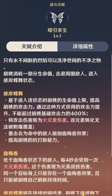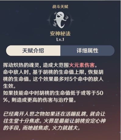 该天赋不为自己加成暴击率,而是为一些自身具备输出能力的队友补充输出,很显然这样设计是为了鼓励身为火元素角色的胡桃参与元素反应,而不是单纯的依赖自身倍率输出。