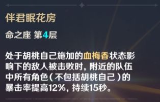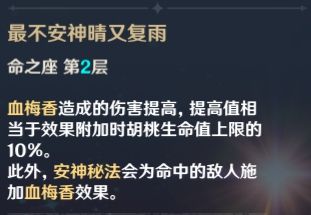 由于血梅香的伤害占比非常小,而且元素爆发所施加的血梅香效果略显多余,因此该命座的提升微乎其微。
