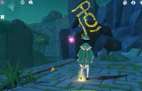 石门开启的条件是需要玩家带着一个火转两圈,记得看到这个符号的时候需要先退后一些,让这个符号正好成一种形状,这样子才能激活机关。这个任务类似于之前的支线任务,需要玩家站在指定的地点,先把视角对准好,然后符号两了以后带着火绕圈圈就可以完成了。