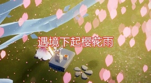 3、樱花场景,遇境下起了樱花雨,从天上飘落花瓣,非常唯美。