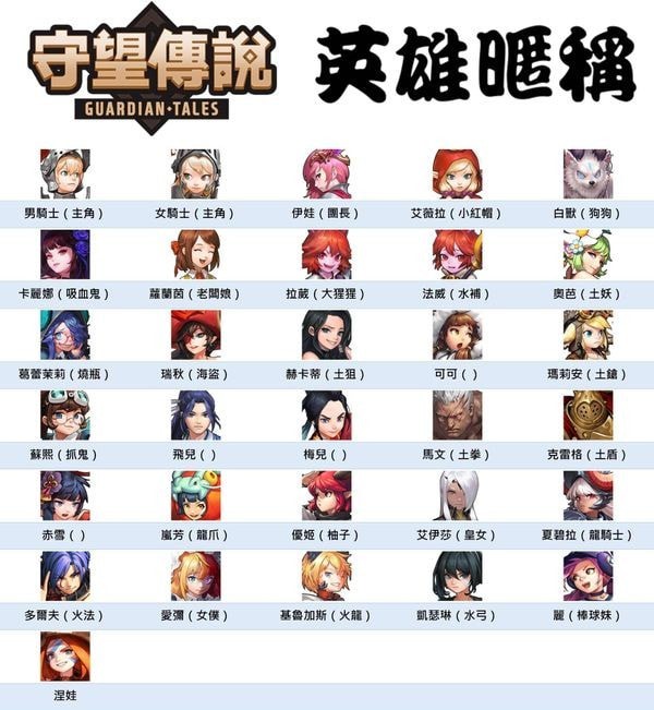 ※目前某些英雄没有昵称,欢迎大家补充。