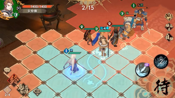 第一回合的时候我们让夏侯仪前进到皇甫申的前边,让皇甫申攻击夏侯仪,古伦德释放控制皇甫申。