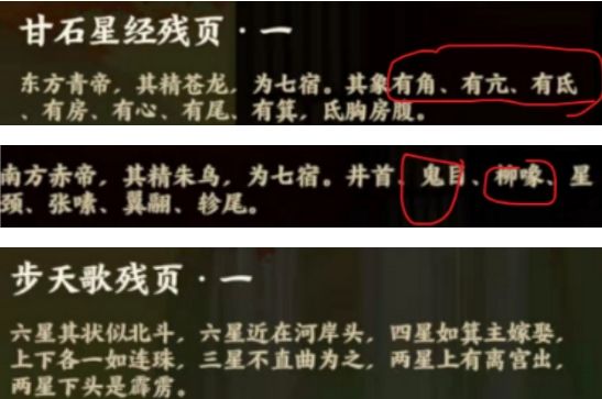 所以选“角、亢、氐”-获得朱雀棋谱-把朱雀棋谱交给李淳风-与神君对话-贴一下提示。