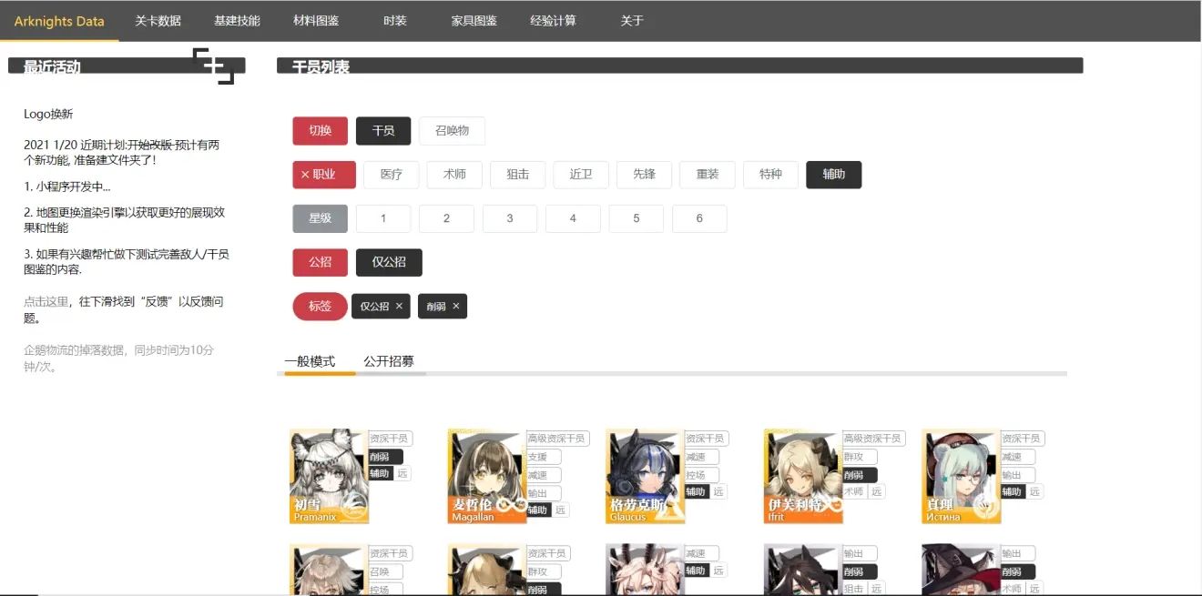 地址:http://prts.wiki/w/CHAR?filter=AAACAAAEQAAAAAAAAAAAAAAAAAAAAA