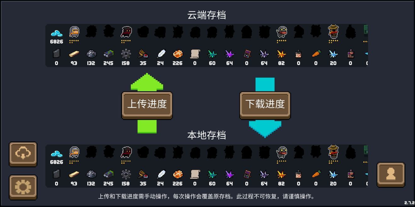 1、进行兑换前,点击云存档按钮,上传当前进度;