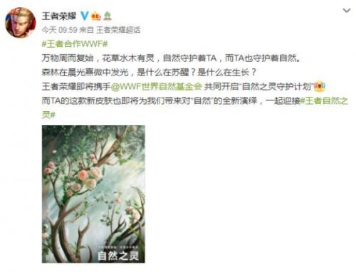 这款皮肤,就叫“自然之灵”。而且可能是三方联名,分别是王者荣耀、巴宝莉、WWF。而系列皮肤的话,是传说皮肤,外加星传说皮肤。