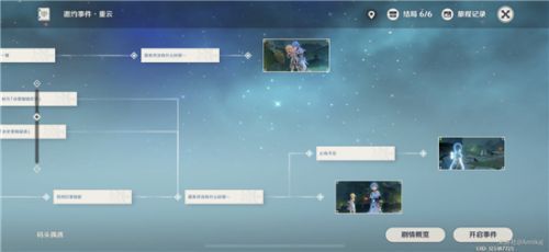 首先,我们可以在传说任务的边上找到本期邀约事件,使用钥匙解锁芭芭拉邀约事件默认剧情我就不剧透了,首先我先放一下整个流程图,想要自行摸索的小伙伴们可以选择不看后续的攻略哦~