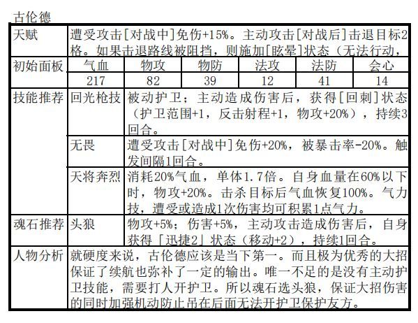 同时由于古伦德阵法额外增伤是未满血增伤,为了发挥阵法的最大化,3男也是相对固定的,我个人推荐古伦德+高戚+阳寰。