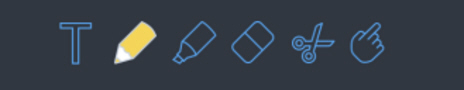 打字、书写、荧光笔、橡皮擦、套索工具、切换触屏,左侧可以选择字迹大小,右侧可以挑选颜色,形成自己的调色盘(向右滑动切换),书写分为两种笔迹——钢笔和圆珠笔(带笔锋和不带笔锋的区别),点击右下角放大镜标志可放大书写,书写时末端暂停几秒即可变成直线或圆,方便作图。