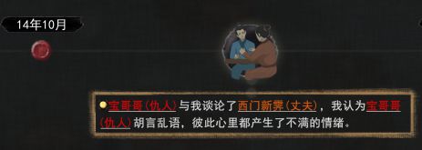 仇恨3星,好感4星半,这时你会发现你和他妻子谈话,内容会变成诋毁类的话(前提是你和她结成道侣,且她对你好感为满星)