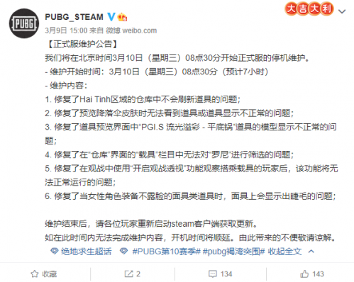 绝地求生3月10日更新到几点?3月10日更新维护时间介绍