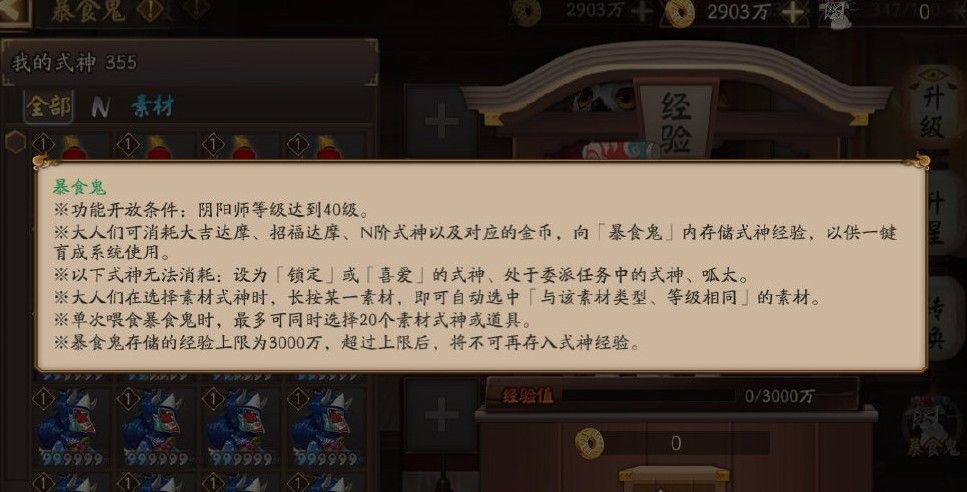 6.暴食鬼存储的经验。上限为3000万,超过上限后,将不可再存入式神经验。