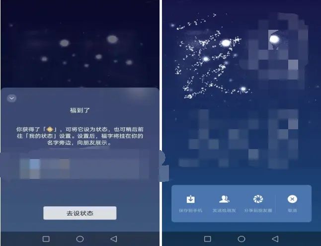 6、当愿望许下之后,在弹出的“福到了”窗口中,点击下方的【去设状态】一项,进入设置我的状态;