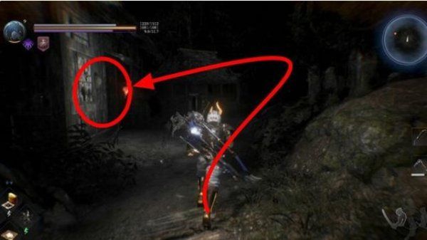到了屋顶之后,按照箭头来到下图位置,跳下去击杀一个蛇女,第一片常暗区域就破除了。