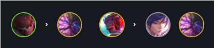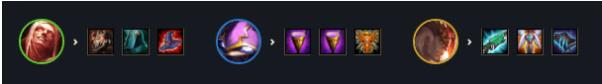 前期可以选择腥红或神盾过渡也可以选择空城计过渡,直接吃高经济以及提前拿装备记住,吸血鬼成型三星会非常猛!直接六级卡50息滴n就行