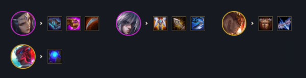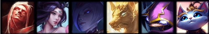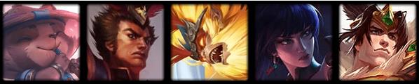 阵容搭配:莫甘娜、男刀、乌鸦、永恩、刀妹、慎、吸血鬼、风女